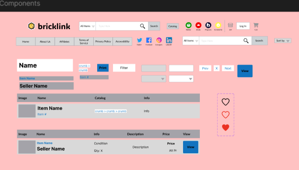 With this project being Nick’s first website redesign, he was introduced to many conventional design choices along the way. These conventions worked quite well when applied to Bricklink, bringing the site one step closer to being more user friendly. As for the overwhelming blocks of small text, Nick redesigned them to resemble the gallery menus seen on current pages of Bricklink.