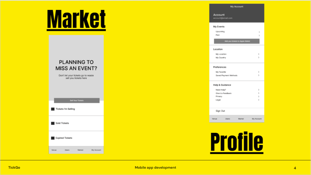 The final presentation consisted of the proposal, 4 low fidelity wireframes, and the addressing of logistical considerations. Out of 4 groups, TickGo! won the competition and the presentation/pitch stand out award.