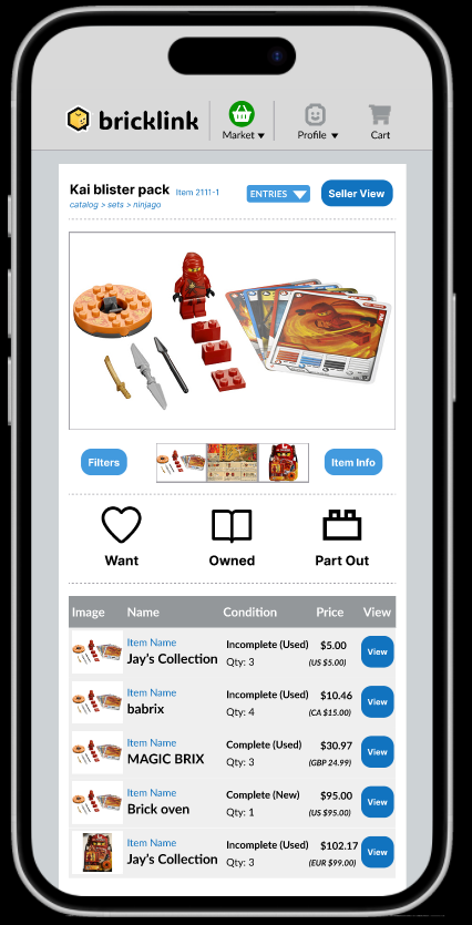 Bricklink is a site designed exclusively for LEGO resale. It is popular among collectors, myself included. The site has a reliable user base, but the outdated UI is overwhelming for both returning and new visitors.