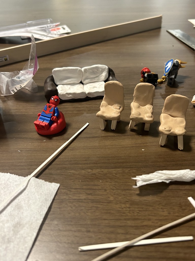 Transferring the ideas from a mental model to a physical one proved to be quite the challenge. Since actual motion tracking lights would have been both too expensive and time consuming, our group settled for clay as a representation.